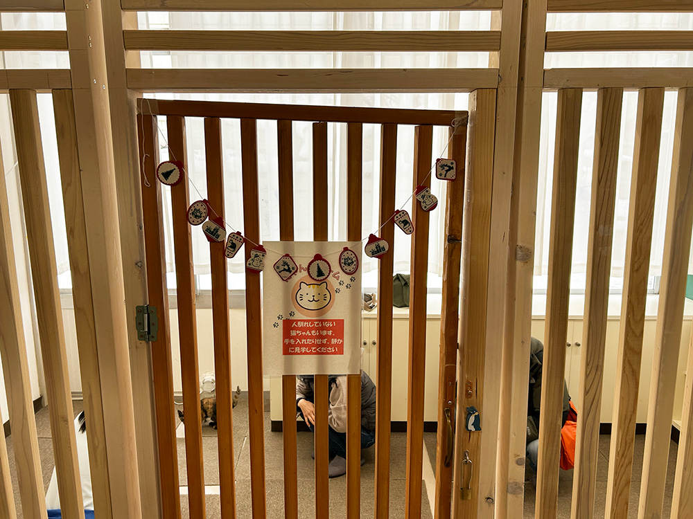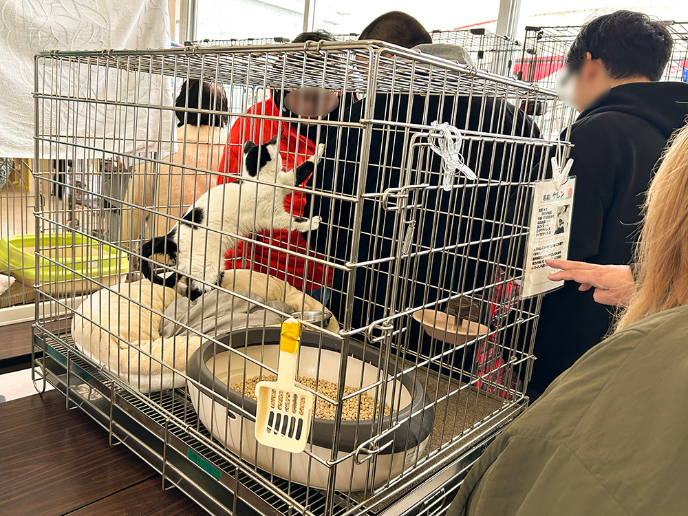 譲渡会では、猫たちと実際に遊んだり、触れ合ったりできるスペースが設けられています。