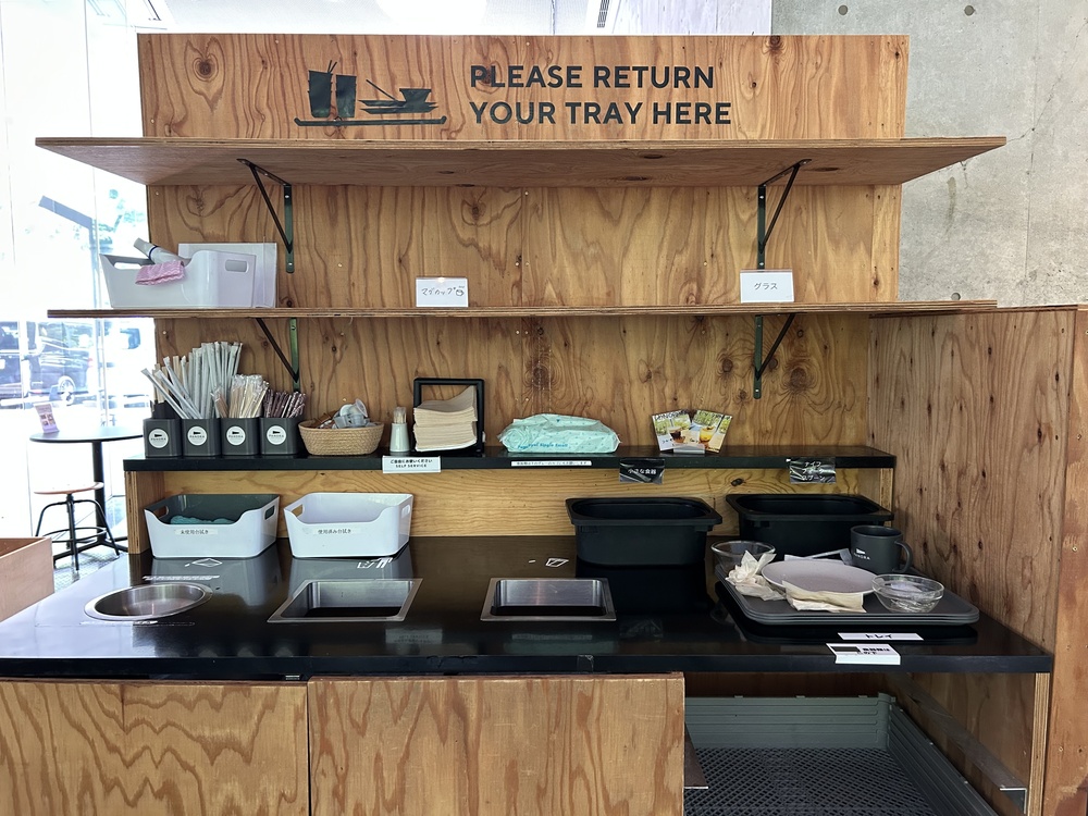 お店での飲食を楽しんだ後は、自分で食器とごみを別々にして片付けます。