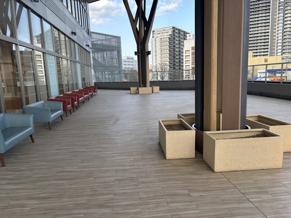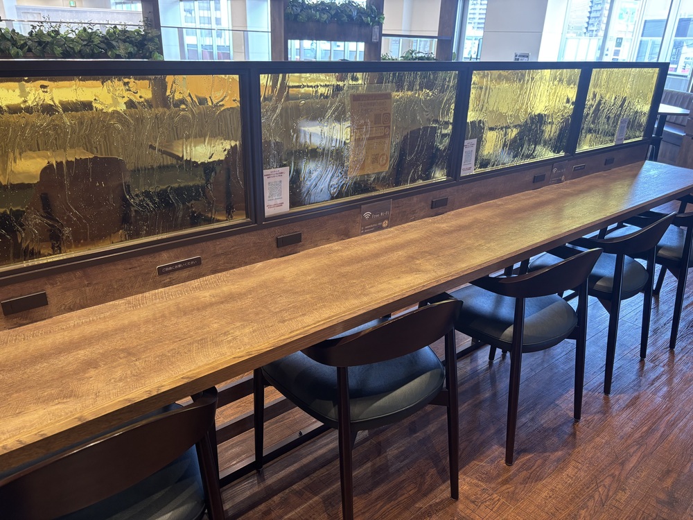 施設内はFREE Wi-Fi利用可能。カウンター席は、コンセントの利用も可能なのがうれしいですね。店外にソファ席もあり、さらには屋外に出るとテラススペースもありました。とても広く解放感があり、晴れた日にはテラス席の利用もおすすめですよ。
