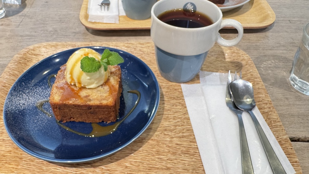 本日のケーキは、「キャラメルとバナナのパウンドケーキ(バニラアイスのせ)」でした。