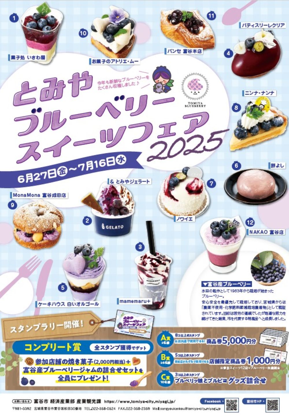 そんな地元のブルーベリーをもっと多くの人に味わってもらおうと始まった「とみやブルーベリースイーツフェア」は、今では市内の人気イベントのひとつに。店舗ごとの個性が光るスイーツは、どれも期間限定で、この時期ならではの味わいが楽しめます。