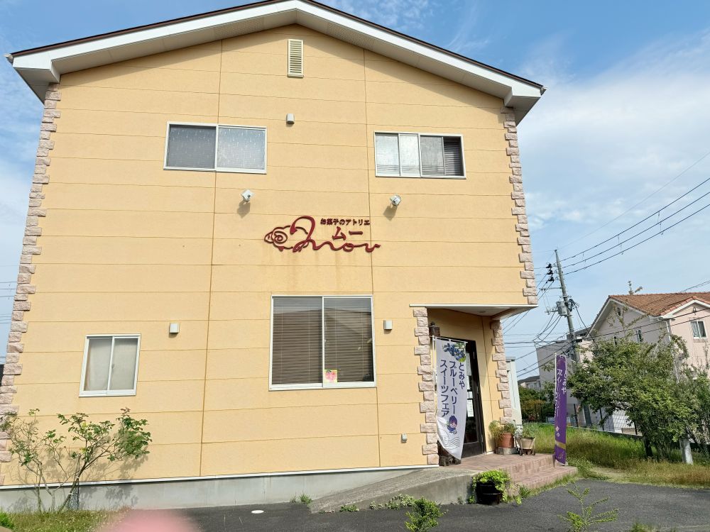 今回、最後に立ち寄ったのは住宅街にひっそりと佇む「お菓子のアトリエ・ムー」。店構えはシンプルながらも、おしゃれで温かみのある雰囲気が魅力です。