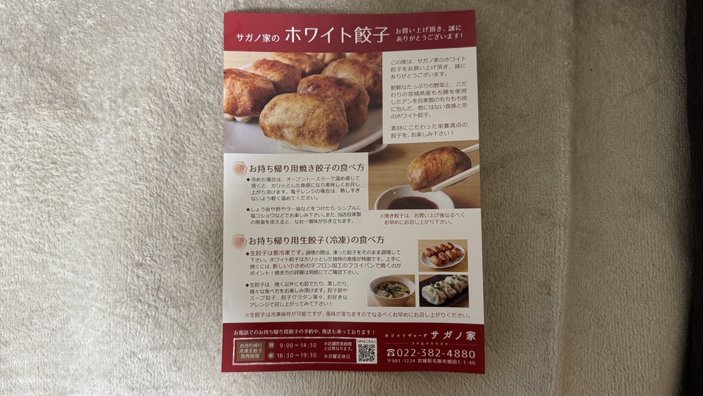 今回は名取駅から徒歩で約10分、車で約5分の所にあるホワイトギョーザ サガノ家さんを紹介しました。