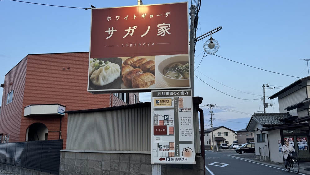 ホワイトギョーザ サガノ家さんに14台分の駐車場があります。県外ナンバーもよく見かけます。