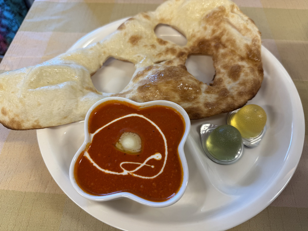 ナンをチーズナン・ガーリックナン・セサミナンなどに変更できるので、自分好みにカスタマイズ可能です。