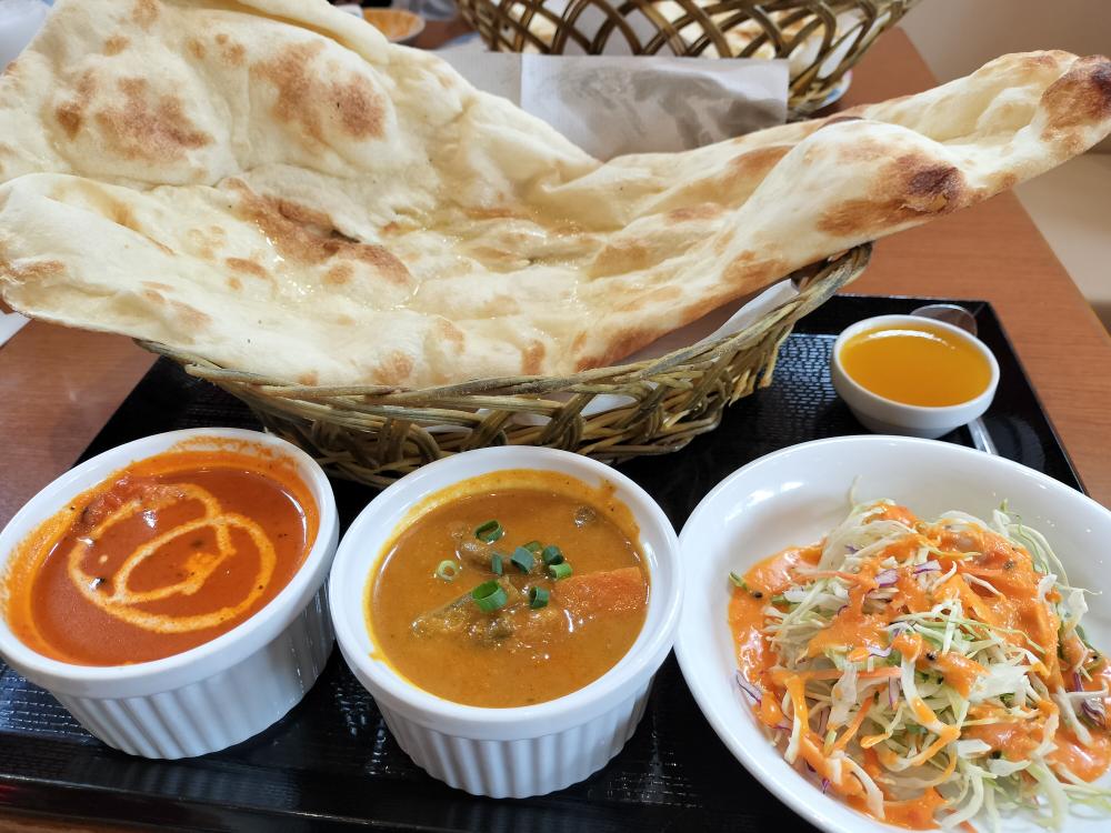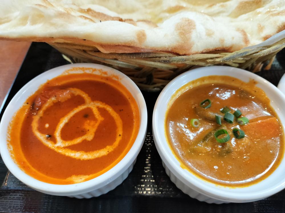 この日は「バターチキンカレー」と、日替わり「アスパラガスとチキンのカレー」を選びました。このメニューはもちろん男性も注文できますよ。