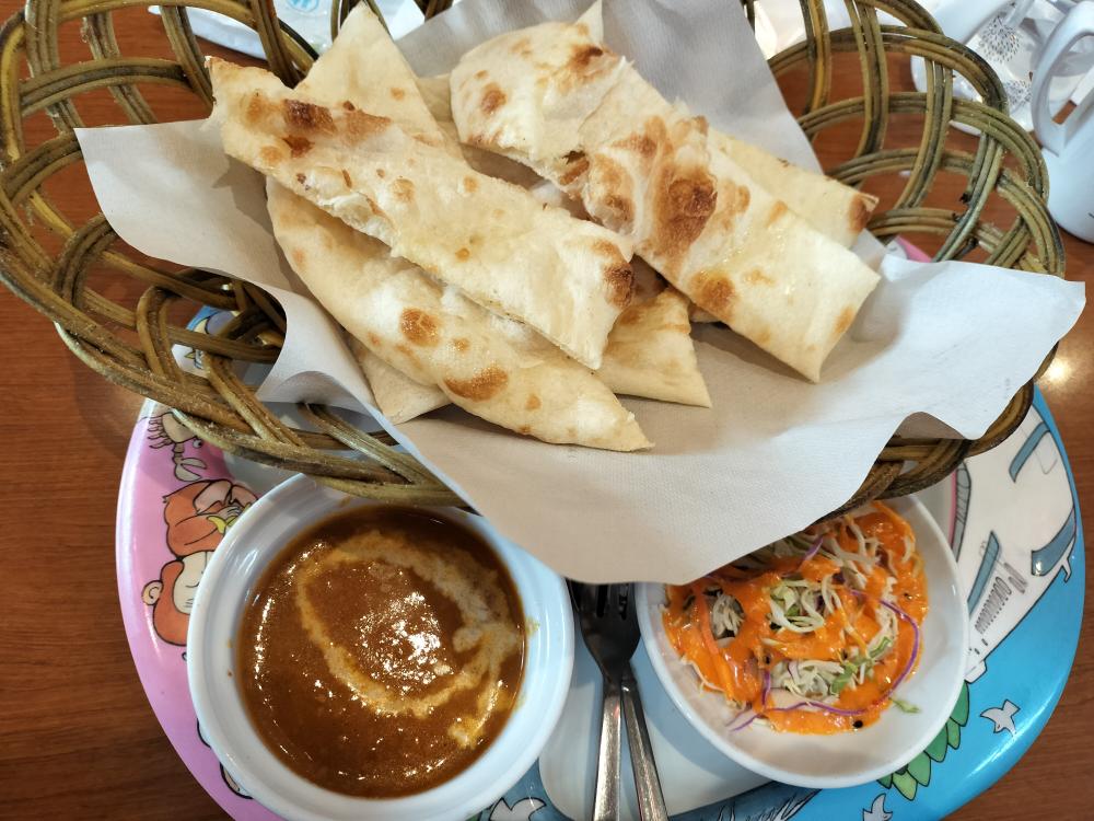ナンは事前にお願いすれば、ハサミで小さくカットして提供してくれるので、まだ手でちぎるのが難しいお子さんにも安心です。