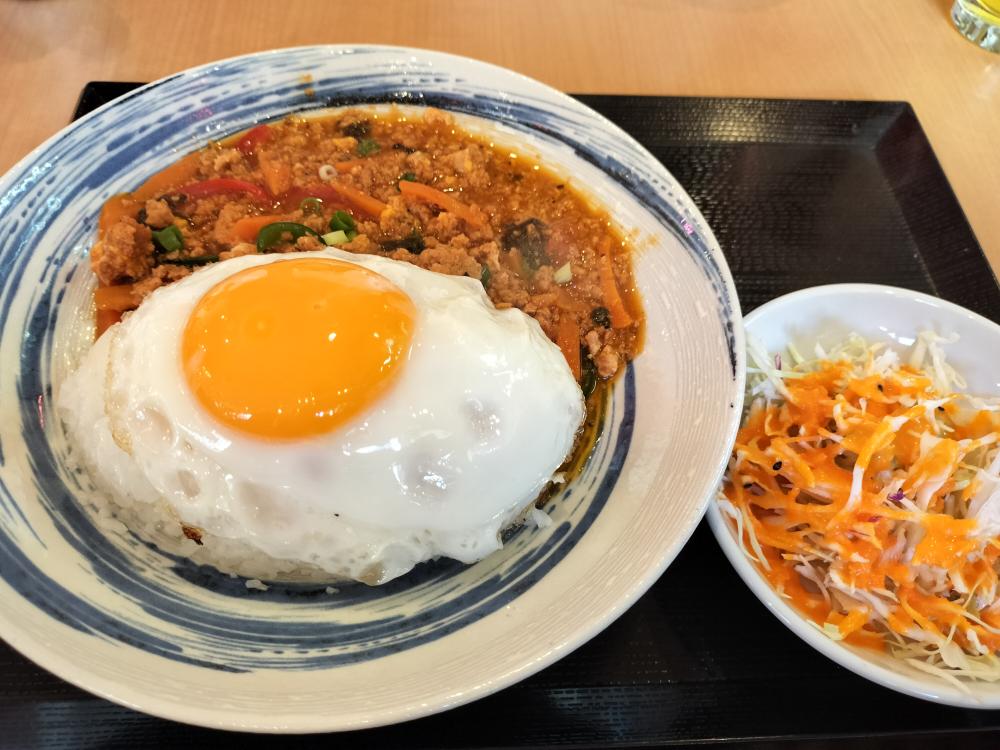 見た目にも食欲をそそるガパオライスは、ひき肉とピリッとした辛みの効いたソース、半熟目玉焼きの組み合わせがたまらなく、ごはんがどんどん進んでしまう一品です。