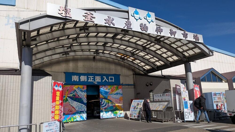 JR仙石線「東塩釜駅」から徒歩17分ほどにある「塩釜水産物仲卸市場」。