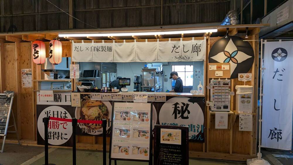 早朝の市場めぐりをしていたところ、塩釜水産物仲卸市場内にあるブランドラーメン「だし廊 SaKaNa」を発見!
