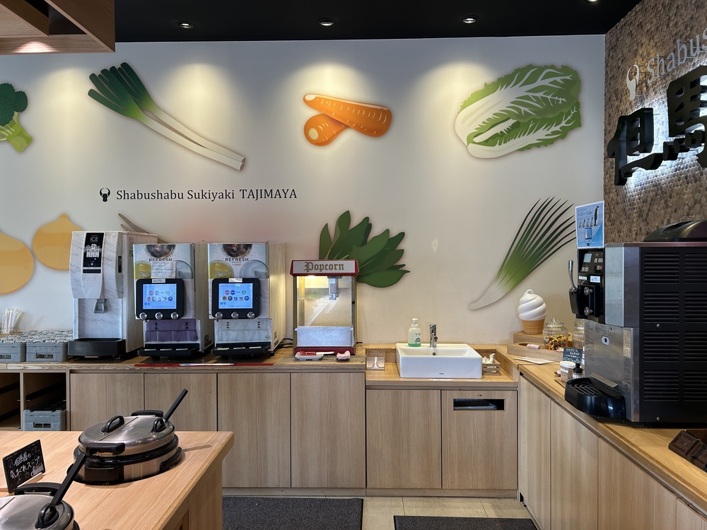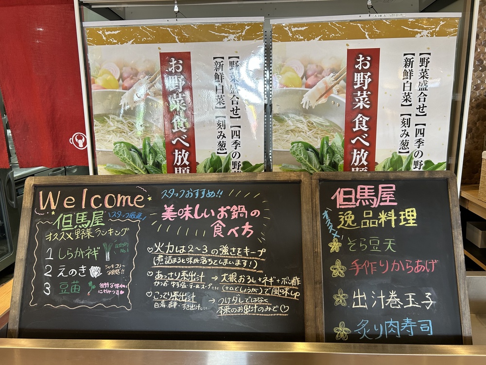しゃぶしゃぶのおいしい食べ方は、バイキングコーナーの目立つ所に大きく書かれています。