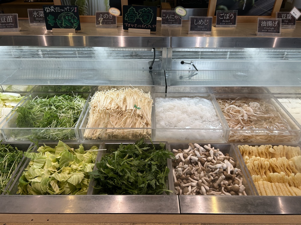 新鮮な野菜などはもちろん、しゃぶしゃぶ用に薄く切られていています。