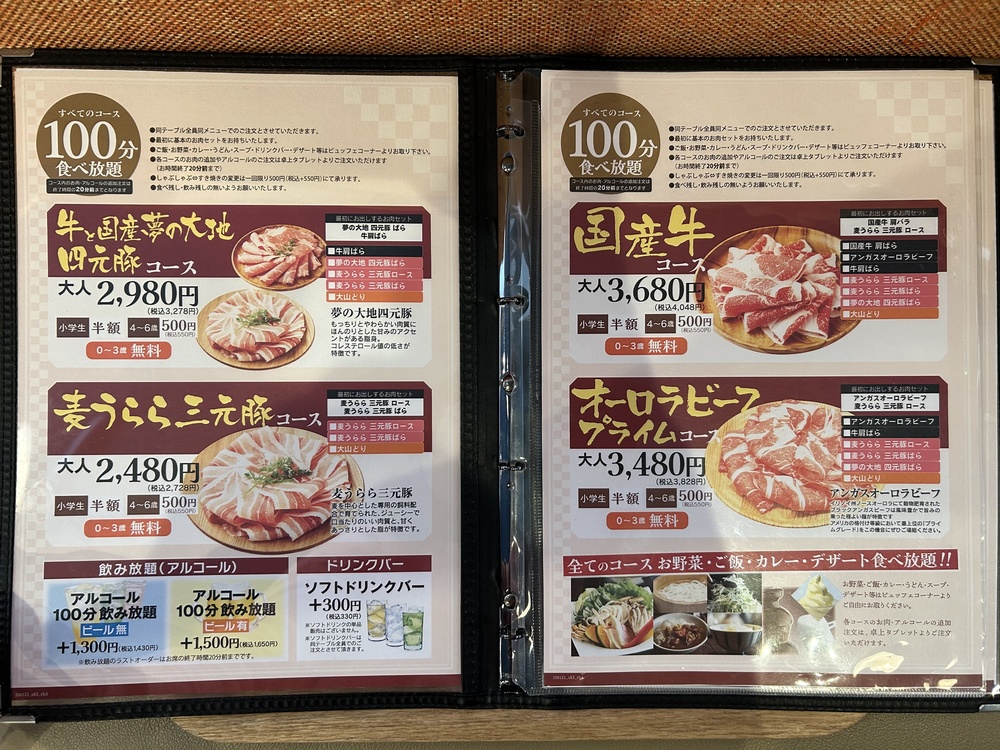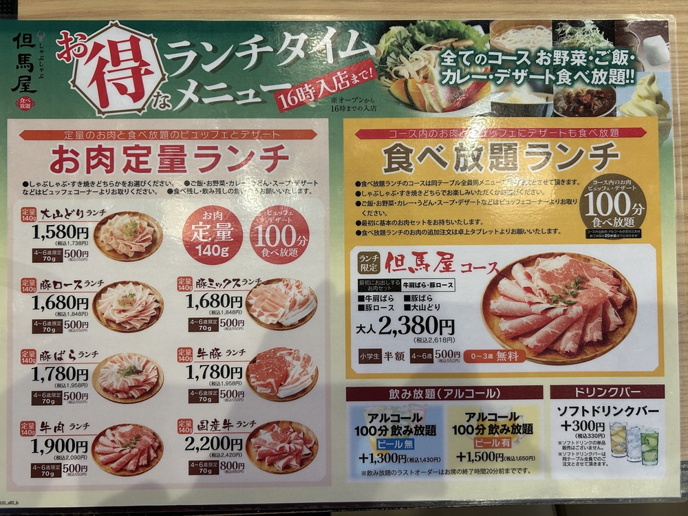 食べ放題や飲み放題については、ランチメニューとあまり値段が変わらない、良心的な価格です。
