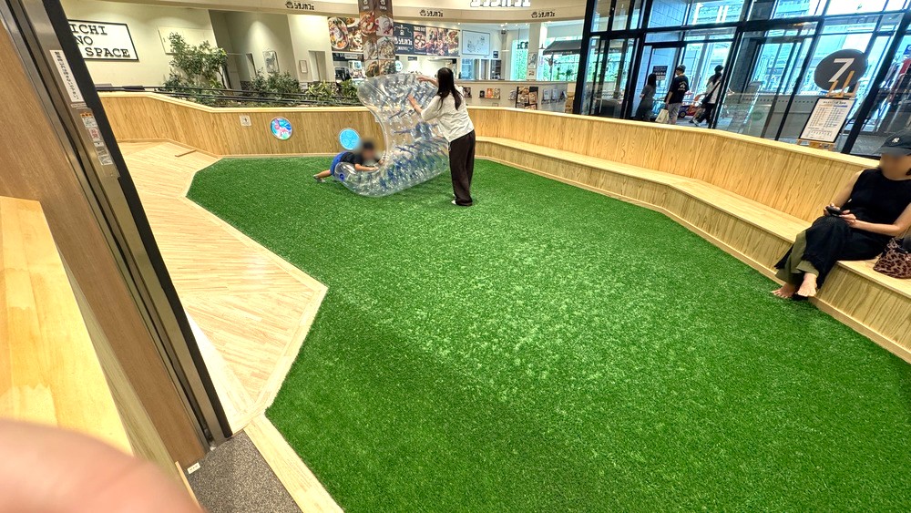 床の一部が人工芝になっているので、小さいお子さんでも安心して遊べますよ♪