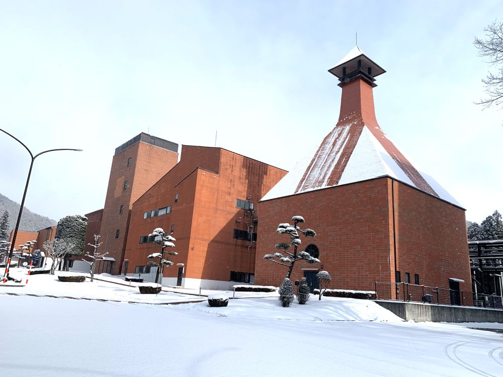 訪れた日は、雪に包まれた蒸溜所がとても幻想的で、陽の光を受けた雪がきらきらと輝いていました