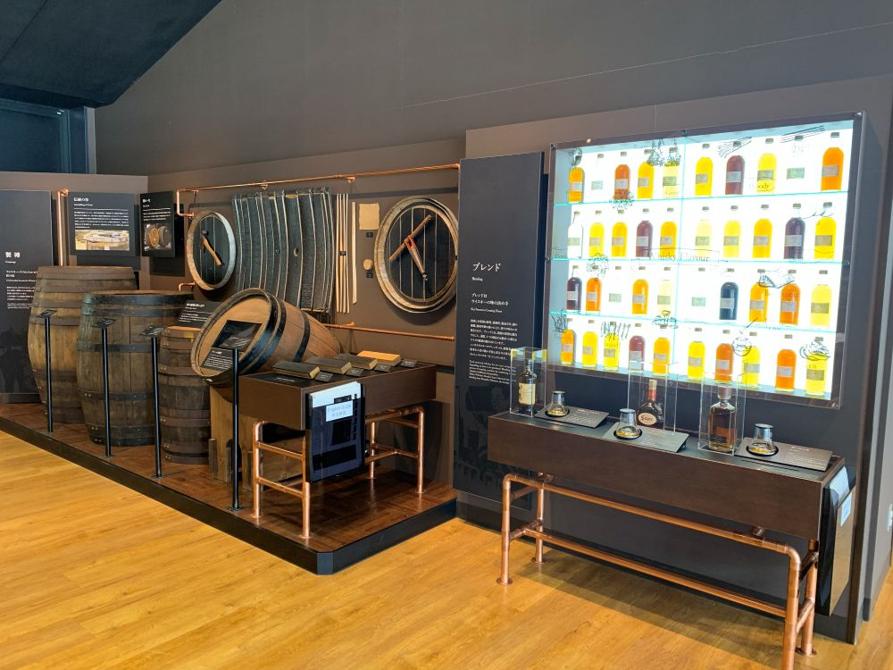 ビジターセンター内には、ニッカの歴史やウイスキーの製造工程を分かりやすく紹介する展示が並び、見学前から期待が高まります。