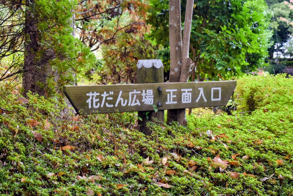 入口は正面のほかに2か所あり、「一本松児童公園」側からの急階段を登ると展望ゾーンや花だん広場へ向かいやすく、海沿いの道から入るとけやき広場がすぐ目の前に広がります。