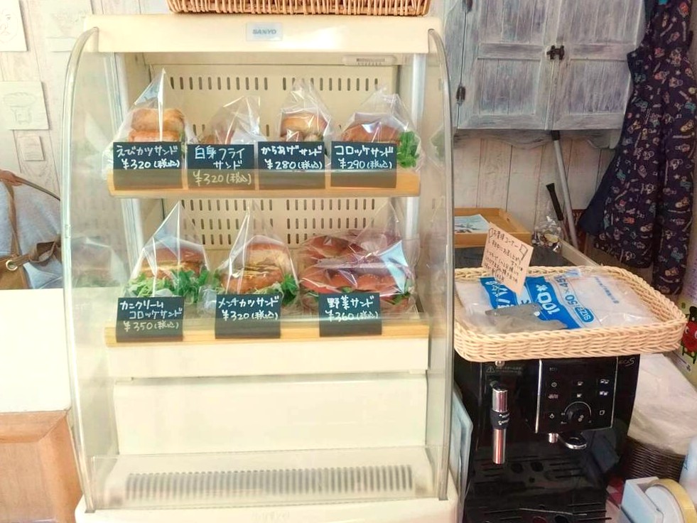 他にも、からあげサンド(税込み280円)やコロッケサンド(税込み290円)、えびカツサンド・白身フライサンド・メンチカツサンド(各種税込み320円)、カニクリームコロッケサンド(税込み350円)、野菜サンド(税込み360円)が陳列されていました。