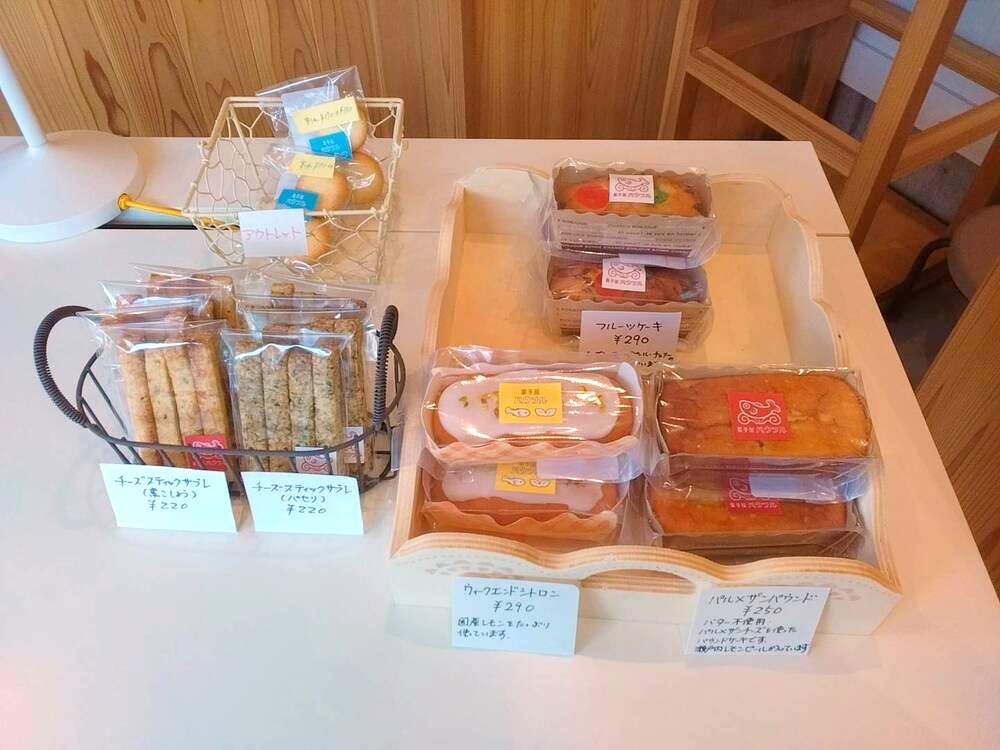 この日は、ビスコッティ(税込190円)、マスカルポーネクッキー(税込170円)、まころん(税込250円)、ブラウニー(税込300円)、フロランタン(税込240円)、グラノーラ(税込200円)などが並んでいました。