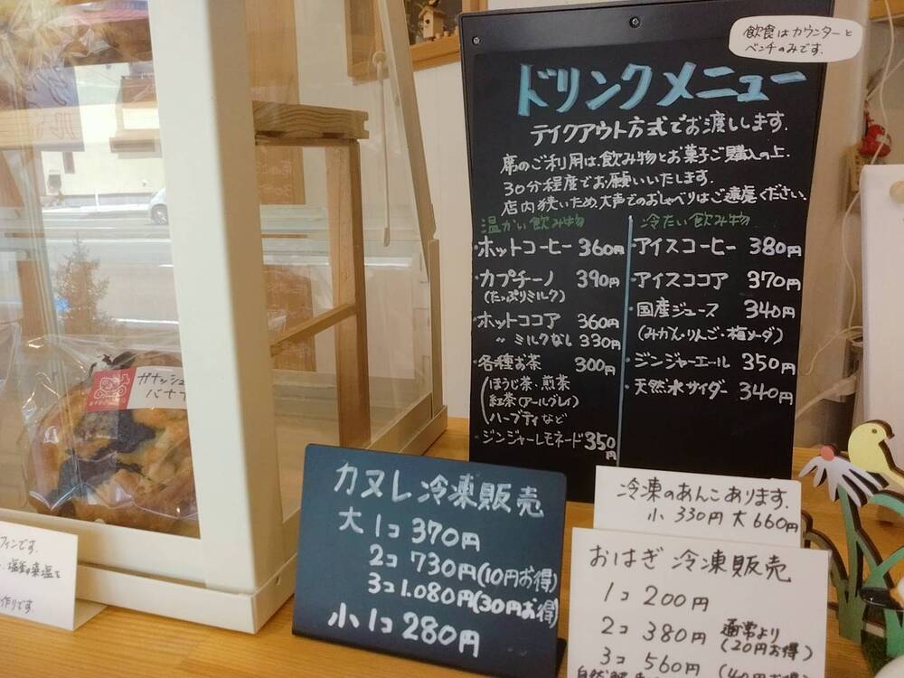 他にも、カヌレ小(税込280円)、カヌレ大(税込370円)、おはぎ(税込200円)、あんこ小(税込330円)、あんこ大(税込660円)の冷凍販売があるので、店主に聞くと用意してくださいます。
