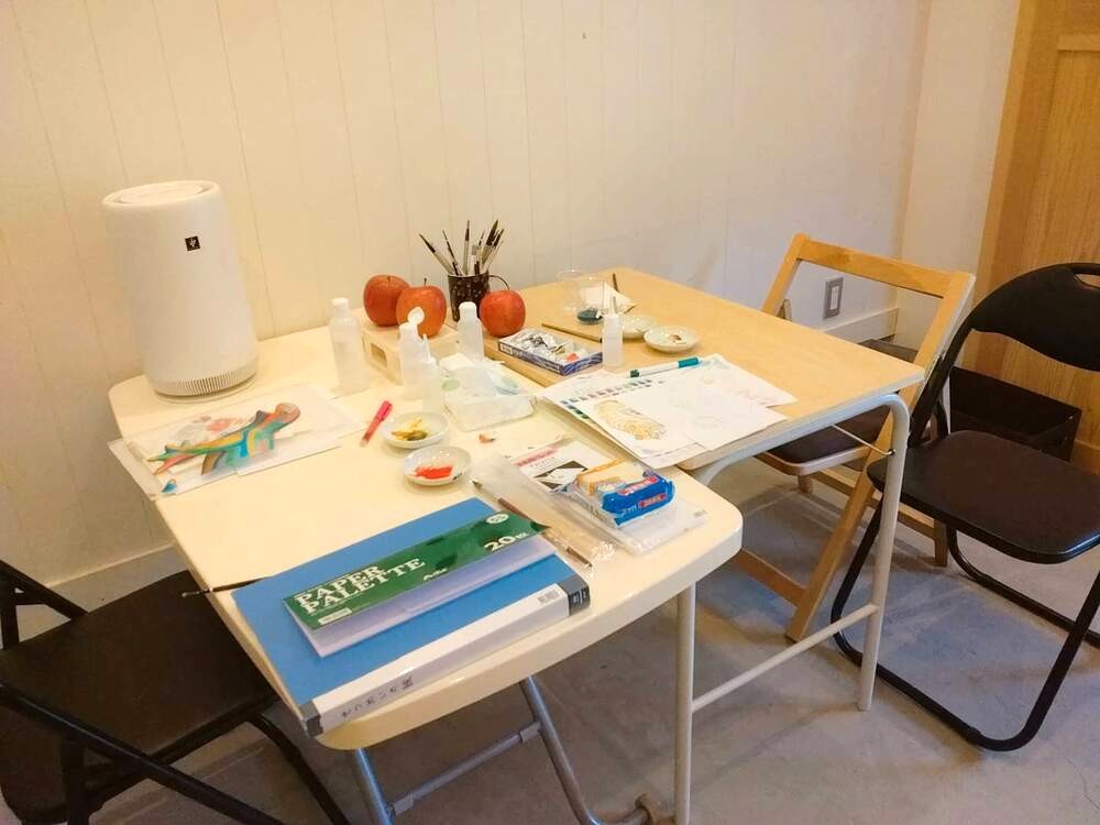 お店の奥には、画家の娘さんが講師をしている絵画教室があります。こちらでは、お子様向けコースと大人向けコースがあり、月に2回開催されているそうです。ご興味がある方は、LINEでお問い合わせいただければと思います。