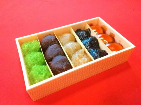 5つ全部の餡がたっぷりのっているので、だんごを食べるときしっかりとそれぞれの味を堪能できます。おだんごも一粒がちょうど良いサイズの大きさのため、お子様やご年配の方でも安心して食べられると感じました。このおだんごは、串が刺さっていないため、お箸を使用して食べていきます。
